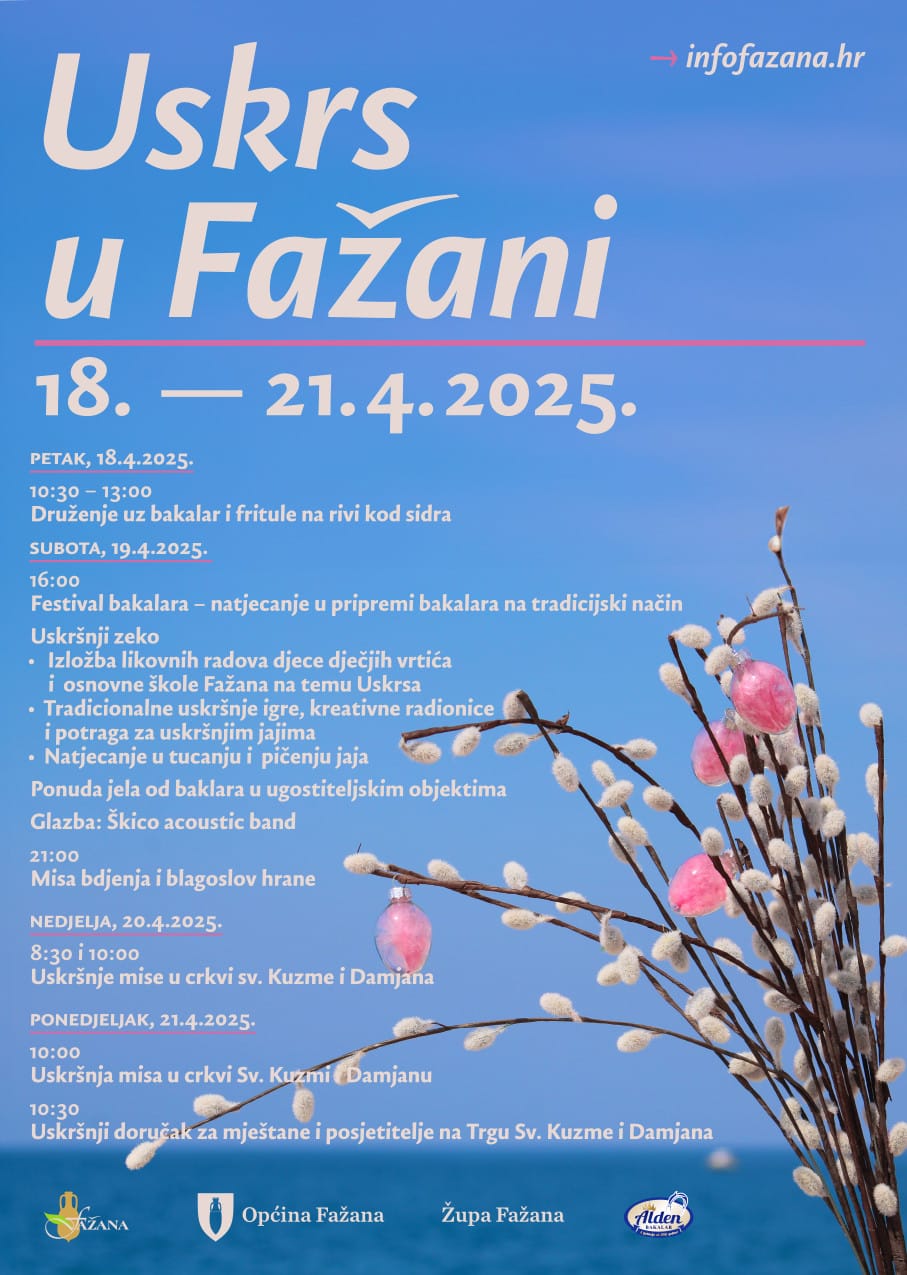 Najavljujemo Vam Uskrs u Fažani 18.-21.04.2025. sa prigodnim programom koji možete pročitati na slici iz priloga.